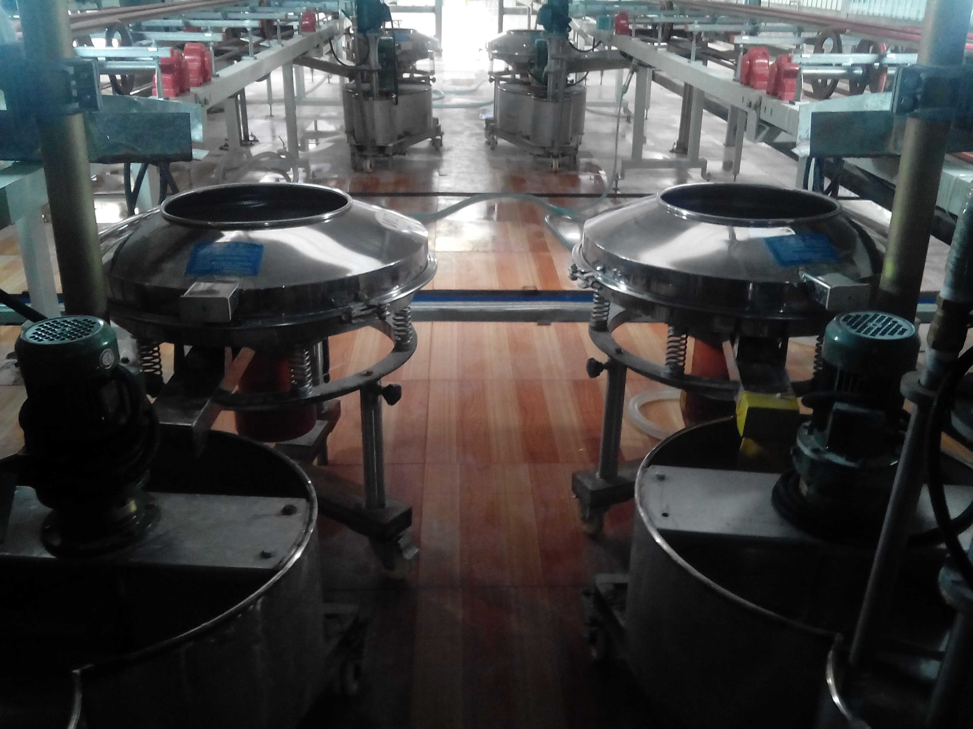 陶瓷釉料的過濾是采用我公司的高頻振動篩,根據(jù)陶瓷釉料的特性及過濾目的,我公司專門針對粘稠性較強的漿液物料的過濾除雜而設(shè)計的過濾篩分設(shè)備,高頻率的振動將漿液打散成分離狀的液體分子,更易于分離出其中的細(xì)小雜質(zhì)。高頻振動篩在過濾陶瓷釉料的過程中,采用140目篩網(wǎng),使用直徑800設(shè)備時每個小時的處理量在650公斤左右;目前陶瓷釉料最高采用325目篩網(wǎng)過濾。