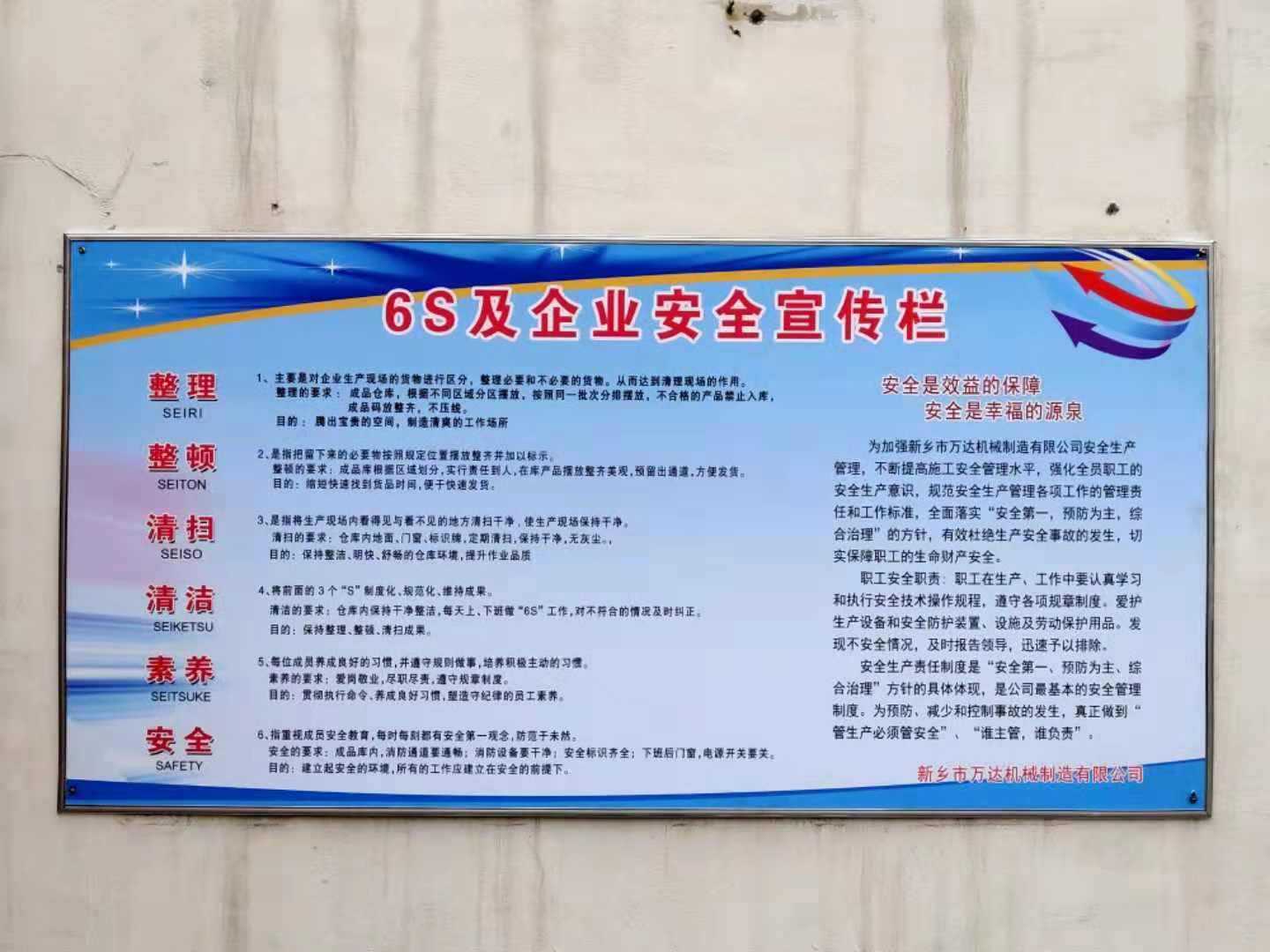 為改善企業(yè)形象,提高人員素養(yǎng),提升萬達各生產(chǎn)車間現(xiàn)場管理水平,經(jīng)公司楊總研究決定:在萬達各生產(chǎn)車間大力推進以“整理、整頓、清掃、清潔、素養(yǎng)、安全”為主要內(nèi)容的“6S”管理活動,要全面落實“安全第一,預防為主,綜合治理”的方針,有效杜絕生產(chǎn)安全事故的發(fā)生,切實保障萬達職工的生命財產(chǎn)安全,使各生產(chǎn)車間基礎管理工作更加扎實,為萬達實現(xiàn)生產(chǎn)世界一流品質的產(chǎn)品奠定堅實基礎。