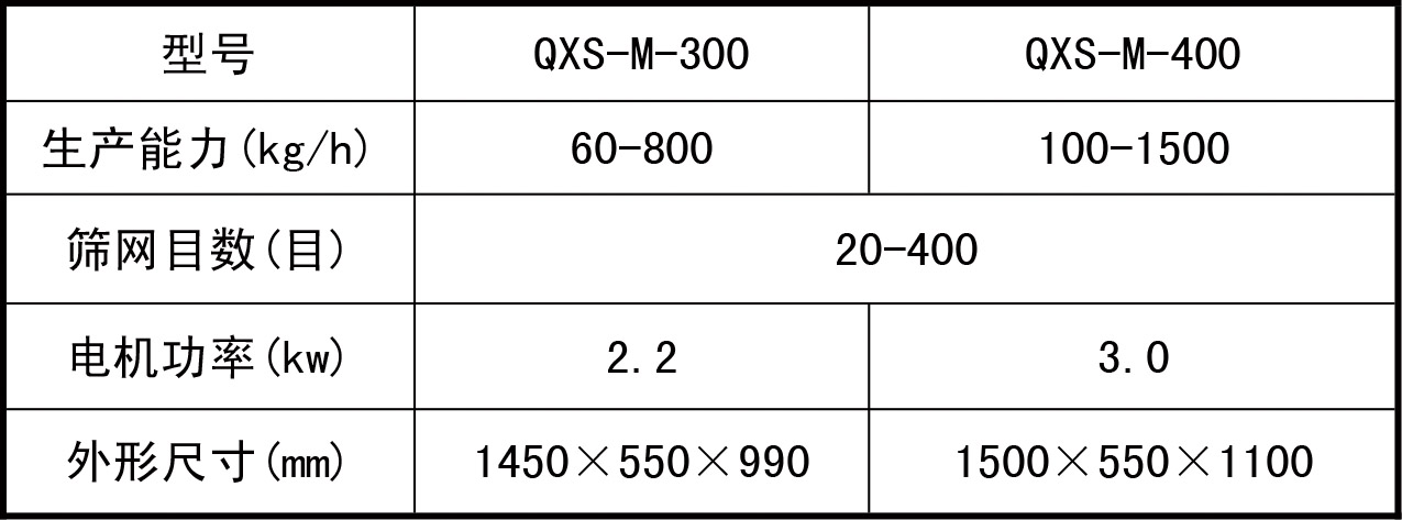 ?QXS-M密閉型氣旋篩技術參數(shù):